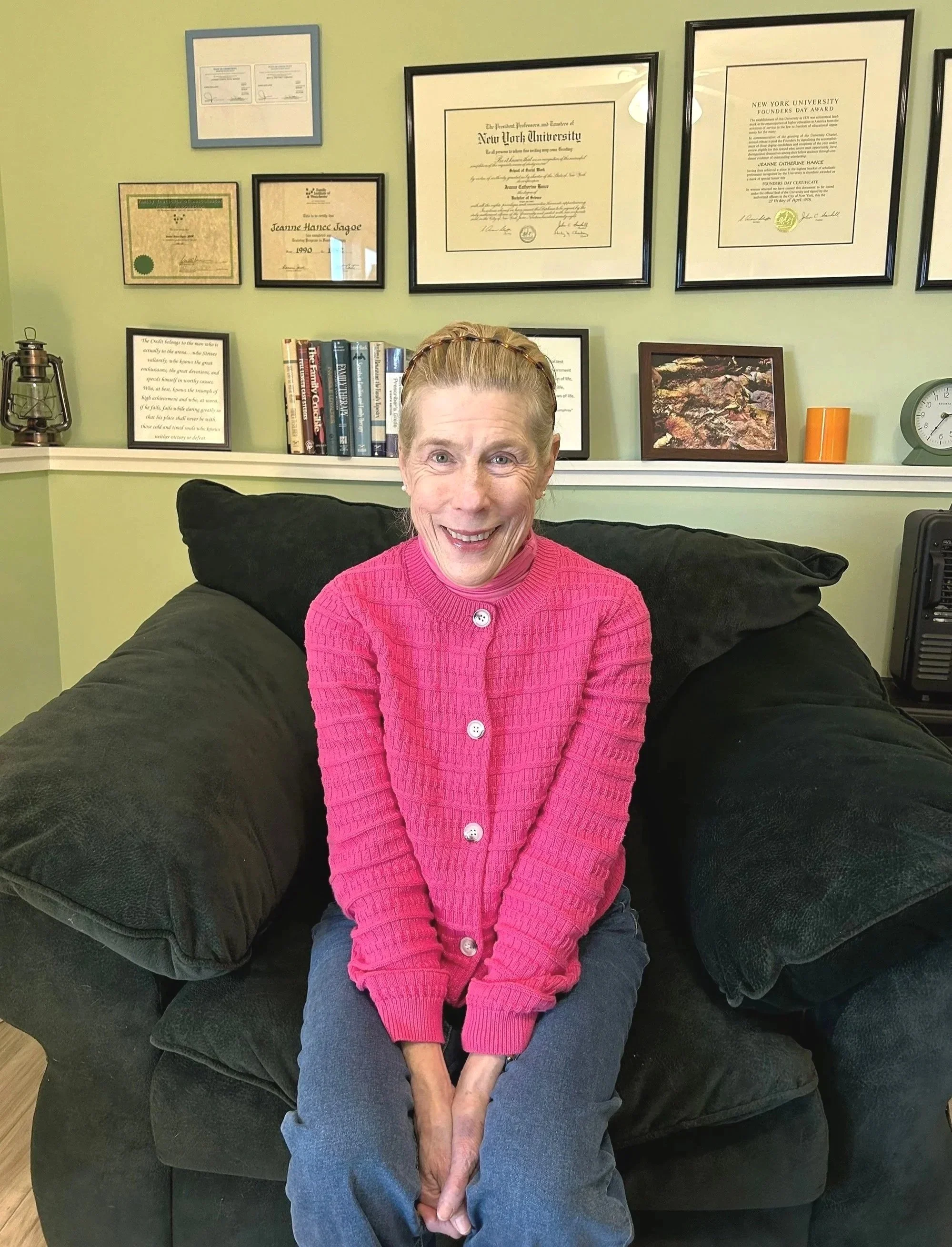 When an individual or a family experiences a life-altering trauma, including illness, they need somewhere to turn. For over 40 years, Jeanne Hance-Jagoe has been offering guidance and comfort to those confronting crises and traumatic circumstances. With extensive experience providing psychotherapy services in both the private and institutional settings, Jeanne’s specialties include: